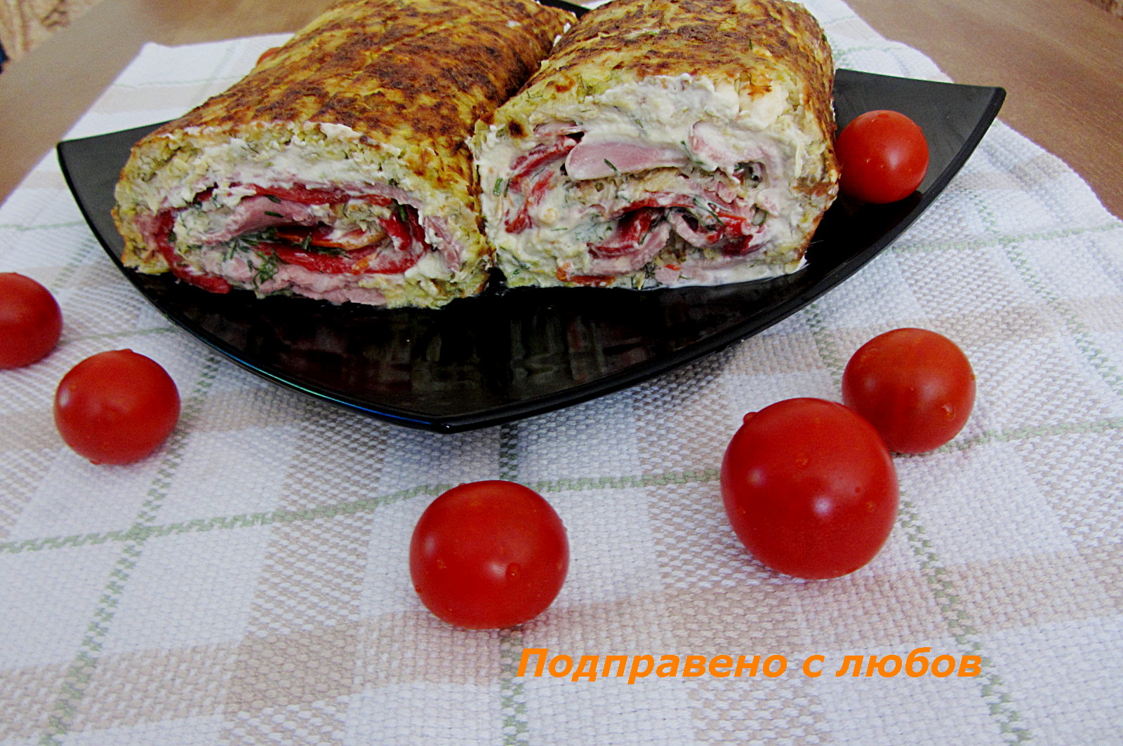 Podpraveno S Lyubov Soleno Rulo Ot Tikvichki S Krema Sirene Shunka I Pecheni Chushki Salt Zucchini Roll With Cream Cheese Ham And Roasted Peppers